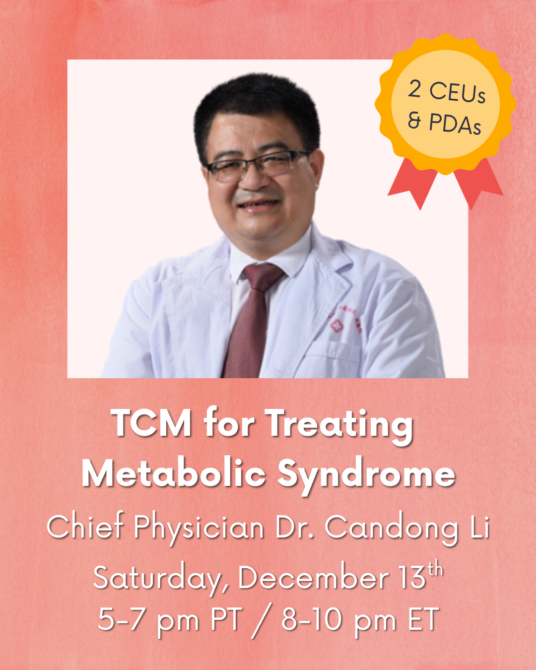 As a holistic healthcare approach, Traditional Chinese Medicine offers unique strengths for managing a healthy weight and metabolism. TCM experts Dr. Jiangyi Yu and Dr. Candong Li will share their unique perspectives on managing obesity & metabolic syndrome through herbal medicine, acupuncture, lifestyle changes, and more.